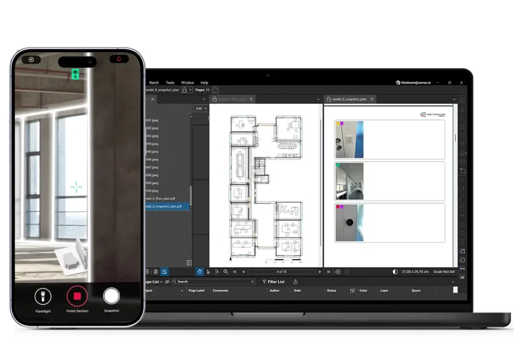Verwandle Bestandsaufnahmen in prüfungsfertige PDF-Dateien für Bluebeam Revu.